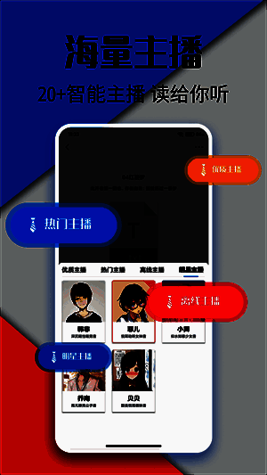 3.我们还将根据观众的喜好选择最喜欢的音频主播,并使用主播的声音阅读用户喜欢的小说。