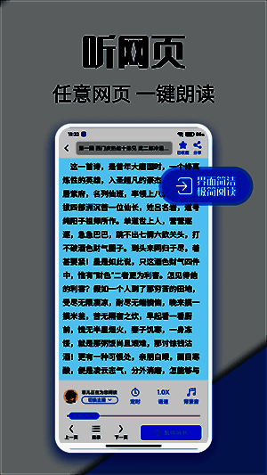 2.任何网页都可以点击收听,提供搜索和更新内容,无论是小说还是文章,让听众随时收听。