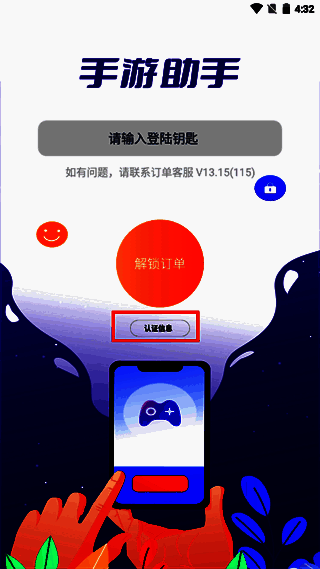 6、然后输入自己的登陆钥匙,点击解锁订单之后启动游戏即可。