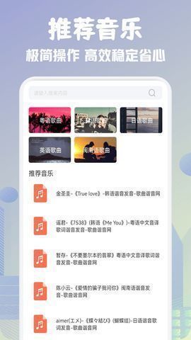 歌词适配app免费下载安装APP提供了强大的歌曲功能,让你轻松下载歌曲。它拥有全网最完整的音乐,基本覆盖了整个平台的所有免费和付费资源,支持歌曲的歌词搜索功能,可以帮助用户快速找到相应的音乐。非常适合喜欢音乐创作的朋友,并且平台内置了专业的音乐素材库,大量的音乐素材资源实时更新,帮助你更好的进行音乐创作,并支持用户进行免费的杂词编辑操作。它使用起来非常方便和简单。