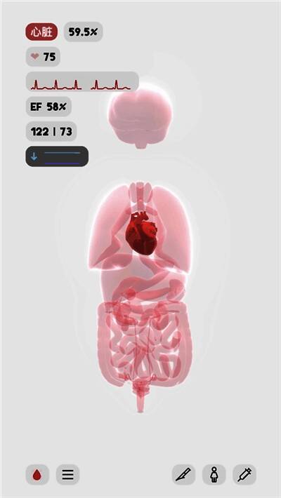 6、游戏右上角会显示人体模型此时的健康状况,让玩家能够查看不同情况下的人体状况。