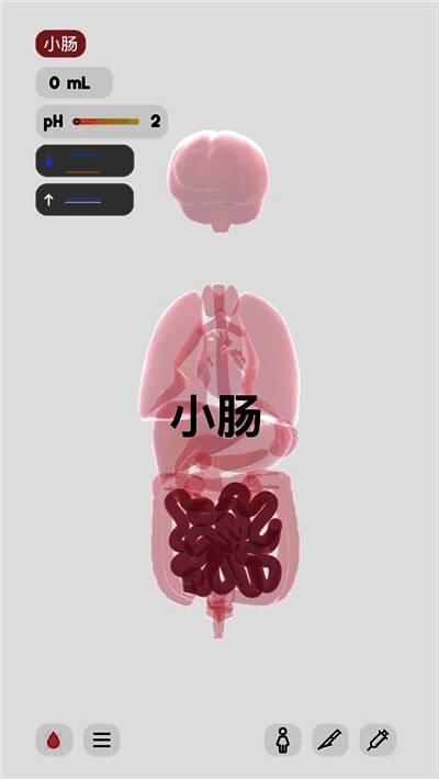 3、玩家能够随意地分离、移动器官,方便玩家进行观察。点选中间区域,模型就会自动回到初始位置。