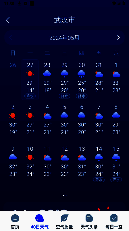 3、选择之后,就会出现当地的未来天气、空气质量以及天气头条等内容。