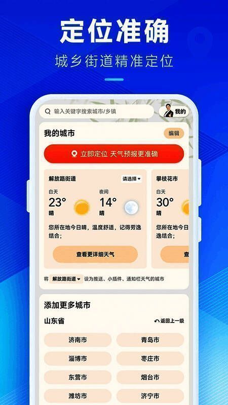 4、推荐的精密天气预报服务可以让用户获取更准确的城市天气数据信息,并显示相应的天气信息。