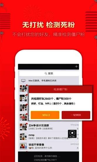 1.该软件可以轻松清除微信死粉丝,根据规则检测并准确查看已删除的好友。