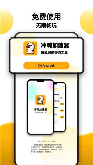 冲鸭变速器是一款专业的手游加速器,软件拥有强大的游戏加速功能,可以帮助你轻松实现五倍变速,让你在玩游戏的时候感受更加强烈的战斗快感。而且软件的使用非常简单,它支持多款热门手游的加速,包括王者荣耀、英雄联盟手游、和平精英、原神、使命召唤手游等,让你不再受限于游戏本身的节奏,自由畅玩游戏。而且,它无需其他复杂的设置,让你可以轻松享受游戏的快感。