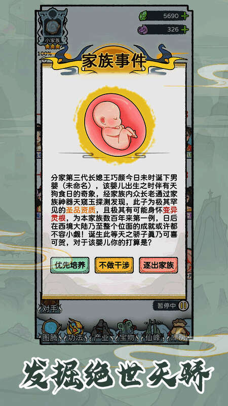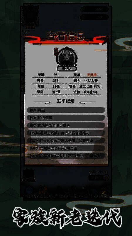 2、游戏中整个修仙家族的发展充满开放性和随机性,每一次选择都可能改变家族的命运。无论是发展策略还是突发事件,都需要你灵活应对,确保家族稳步前行。