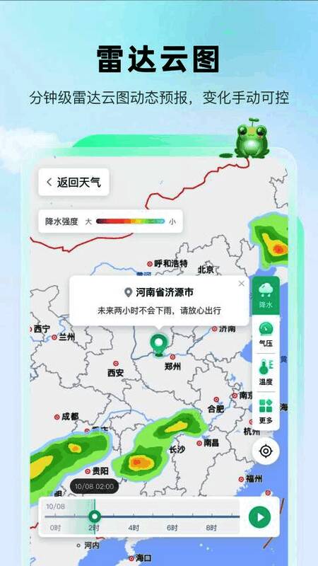 1、短时降雨:未来两小时降水情况,分钟级准确预报。