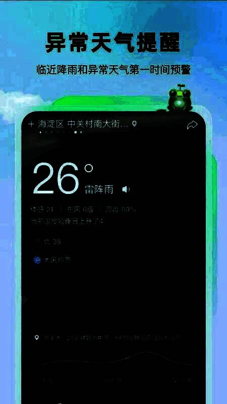 3、:在恶劣天气条件下,可提前发布通知和安全预警,直观了解未来天气变化,保障用户安全。