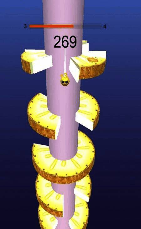 1、水果螺旋跳游戏是一款休闲跳跃类游戏,玩家需要控制水果在螺旋平台上不断向上跳跃,避开障碍,尽可能高地跳跃;