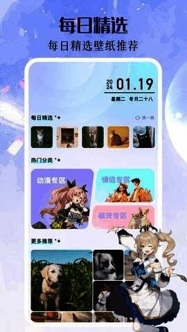 该软件不仅提供静态壁纸,还支持丰富的动态壁纸资源,用户可随心切换不同风格。所有动态壁纸均经过高清优化处理,即使是最细微的画面也能清晰展现。同时,用户还可以根据节日、事件或场景自由选择合适的动态壁纸,满足个性化需求。