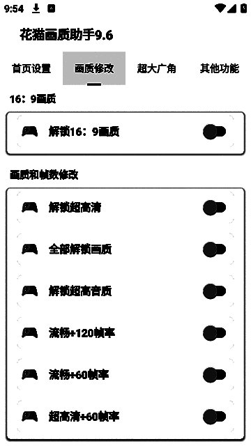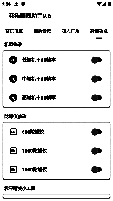 该软件界面设计简洁明了,即使是初次接触的玩家也能快速上手。除了常规的画质调整外,还支持自定义视野角度(如110°、130°、145°、170°等),带来更广阔的战场视野。此外,软件还提供机型适配、陀螺仪调节等功能,进一步提升个性化游戏体验。