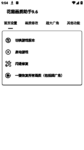 《花猫画质助手》提供一键式画质优化功能,用户无需复杂配置即可轻松提升游戏画面清晰度与流畅度。软件支持多款主流手游,涵盖热门竞技类、射击类及角色扮演类游戏,满足不同玩家对画质与帧率的需求。