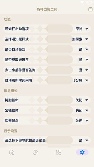 原神口袋工具是一款专为原神游戏玩家所打造的掌上工具应用,通过它玩家们不仅可以实时查看数据信息,如:原粹树脂、洞天宝钱、探索派遣、可养角色等等;而且还可以在线分析你是欧皇还是非酋——抽卡分析;当然最为重要的就是原神口袋工具还拥有着桌面小部件功能,在此功能中你可以通过桌面组件来显示应用内的核心信息,诸如签到时间、半价周本等等!