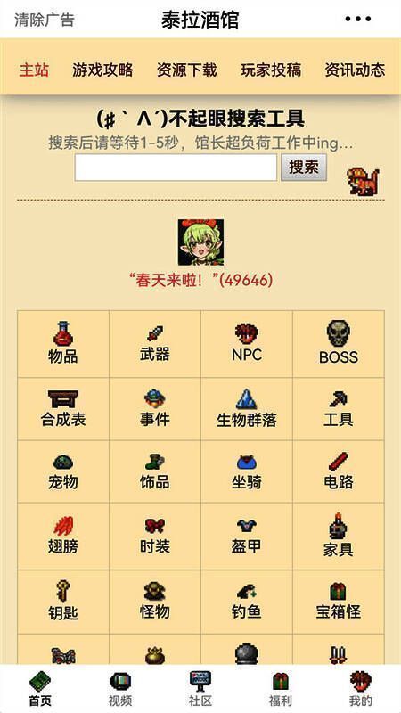 泰拉酒馆是一款资讯攻略app,主要是用于收集、分享泰拉瑞亚1.4版本攻略wiki、下载、合成表、武器大全、boss大全等游戏资讯,集成了图鉴、攻略、视频、社交为一体,为广大游戏玩家提供更多的便利,超便捷的趣味玩法。同时,泰拉酒馆还为大家提供了各种视频可以观看,都是关于泰拉瑞亚的各种攻略,以及更多搞笑有趣的游戏视频,在这里玩家不仅可以感受到游戏的乐趣,还可以提高游戏水平。
