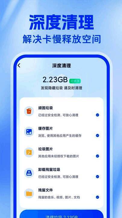 2、简洁直观的界面:清理神速大师软件的界面设计简洁直观,用户可以轻松地找到并使用软件的各项功能,无需复杂的操作步骤。