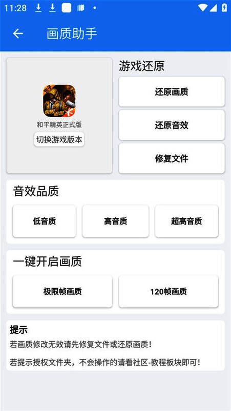 1、在本站下载安装唯梦工具箱后运行软件。点开画质助手,能支持修改和平精英的画质、音效等等,还可以开启120帧和极限帧画质;