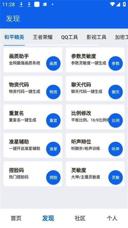 3、玩家可以在和平精英的模块下进行参数灵敏度、物资代码、聊天代码等调整;