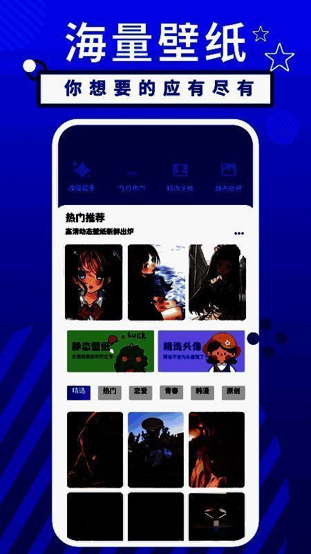 2、个性化设置:软件支持每个人自由选择自己喜欢的壁纸设置,还可以设置和编辑专属手机壁纸;