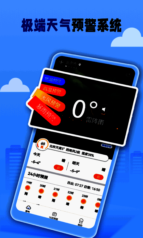 3.及时发布本地天气预警信息,方便用户快速了解本地台风、暴雨、雪灾等气象灾害预警信息。