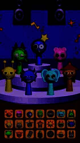 1、节奏盒子Sprunki恐怖3D版有两种玩法:正常画风和恐怖画风。