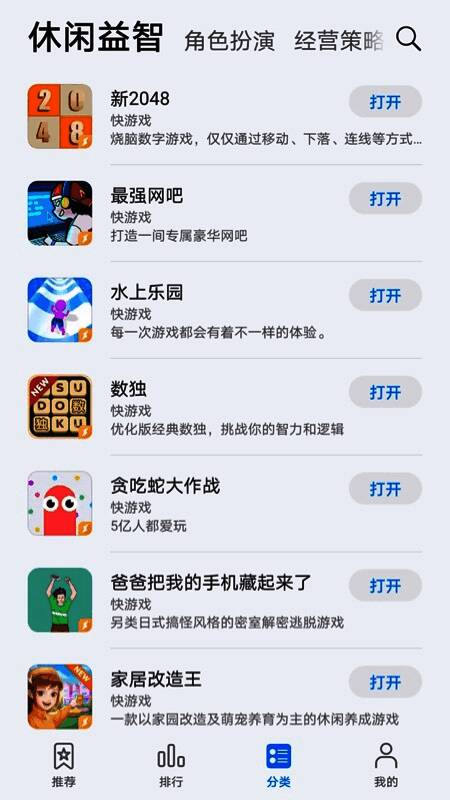 3、安心玩:这里所有的游戏都通过了官方审核,保证了游戏内容的健康安全,无需等待下载可以快速打开体验。