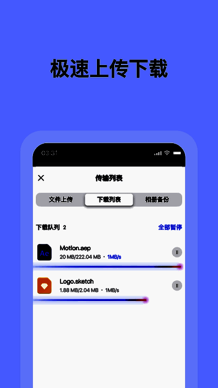 这款软件支持大文件下载和批量下载,一键打开自动备份手机文件,照片,视频等,还内置灵活的日期和密码设置,可以轻松显示文件的浏览量和下载,随时让用户自由管理文件,给用户带来优秀的服务和体验。