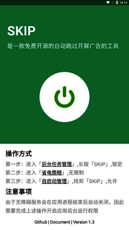 skip跳过广告官网版是一款受欢迎的广告跳过软件,拥有丰富的功能可以免费使用,可以让用户自由设置,轻松帮助用户快速跳过软件广告,给用户带来非常流畅的使用体验,还允许用户直接打开屏蔽广告功能,自由屏蔽各种垃圾广告,能完全满足用户的使用需求,还具有强大的兼容模式,免费帮助用户屏蔽各种手机软件中出现的广告,自由享受非常好的使用体验,还拥有强大的广告过滤功能,力求为用户提供最优质的广告屏蔽体验。