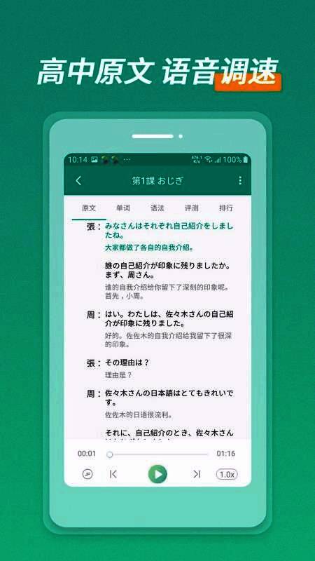 高中日语口语秀是一款热门的免费日语学习软件,可以轻松为用户提供丰富多样的日语学习资料和资源,随时自由选择查看,轻松在里面学习各种日语知识,给用户带来全面的日语学习服务和体验,还拥有很业的日语老师,可以轻松帮助用户快速提升日语水平和能力,能完全满足用户的所有学习需求,而且里面的各种日语课程,视频和日语学习内容非常详细,自由让用户轻松学习,还拥有全面的学习方式和计划可以轻松制定,有兴趣的用户欢迎下载。
