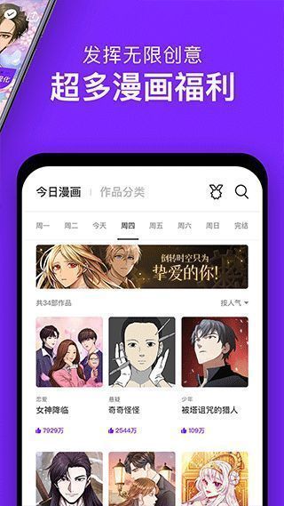 咚漫漫画 在线漫画免费观看是专为广大漫画爱好者设计的原创漫画阅读工具。该软件全面涵盖了爱情、青春、古风、奇幻、喜剧、校园、城市、悬疑等多个类别。可以说,它拥有全网最新、最全面的独家漫画资源。无论是最受欢迎、最新的漫画,还是完成连载,该软件都可以根据用户的喜好推荐他们最喜欢的高质量漫画。此外,它还可以支持一键登录和第三方平台登录,可以说非常方便。如果用户遇到他们最喜欢的漫画,他们也可以关注它们,这样他们就可以在更新后立即收到更新提醒。它还支持离线漫画下载功能,即使没有网络,他们仍然可以随时随地阅读。还有独家特效漫画,可以同时刺激视觉、听觉和触觉。如果你喜欢,可以下载并体验它们。