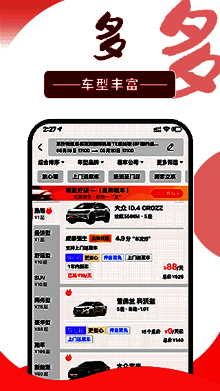 4.千款车型:车型丰富,包括经济型轿车、舒适型轿车、商务车SUV、有各种类型的车辆可供选择,包括豪华轿车、新能源汽车、超级跑车、房车、皮卡、公共汽车等。