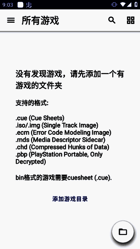 1、在本站下载安装并打开duckstation模拟器,使用手柄连接手机设备之后,点击左上方的三条杠按钮