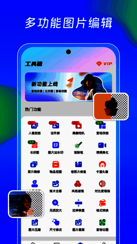 极光抠图手机版下载安装是一款功能强大的图像编辑工具,专注于提供便捷的抠图服务。它采用先进的图像识别技术,可以准确识别和挖掘出图片中的目标对象,无论是肖像、物体还是背景,并且可以轻松处理。用户只需要几次简单的操作即可实现专业级的抠图效果。极光抠图还提供丰富的背景模板和编辑功能,用户可以根据需要自由匹配和调整,使图片更具创意和个性化。无论是日常生活记录还是商业设计,都可以为您提供帮助。