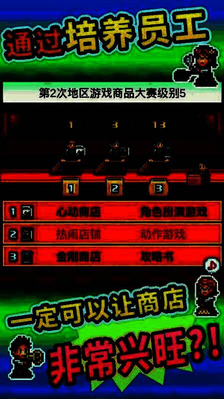 在《梦想商店街物语》游戏中,你将成为一个雄心勃勃的商店经理,开设和管理各种小商店,从电子游戏商店到快餐店,甚至服装店,完全在你的控制之下!通过合理的人员选择和店铺布局,不断扩大商业街,吸引顾客,增加收入。