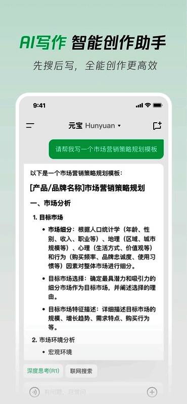 元宝具有强大的语言理解和输出能力,可以用元宝写报告、写方案、写文案、写代码等,元宝都能准确理解,进行专业输出,给人更多的启发,更容易创作内容。