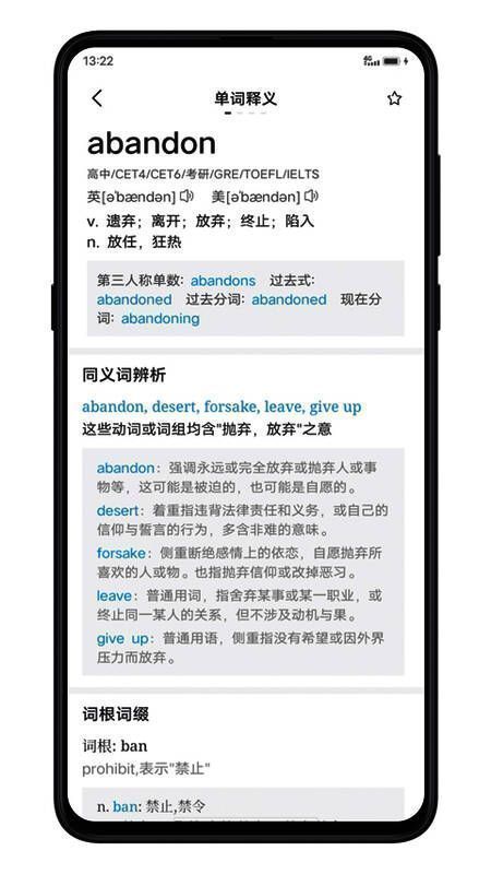 3、面显示清晰的单词内容,允许实时学习定义、短语、双语例句等。