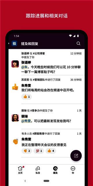 6.与团队沟通,根据主题、项目或与工作相关的任何其他事项组织对话。
