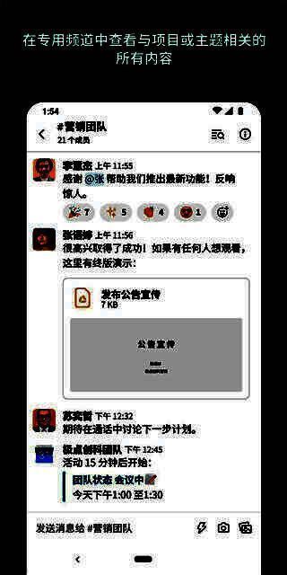 5.与团队沟通,根据主题、项目或与工作相关的任何内容组织对话