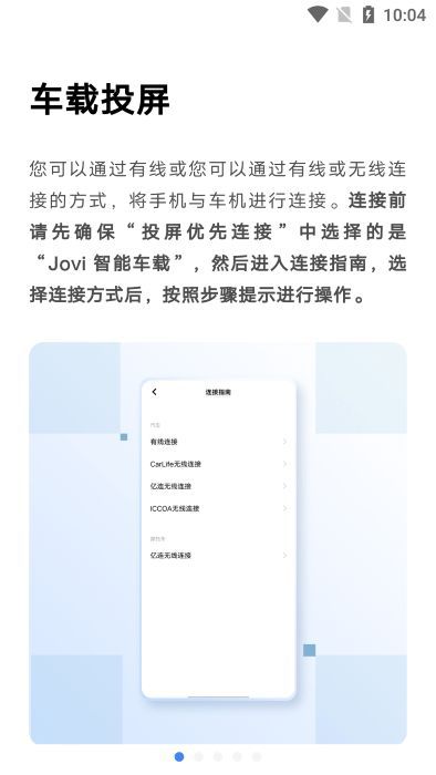 4.连接设置:确保在“屏幕投影优先连接”中选择了jovi Smart Car,然后进入连接指南,选择连接模式并按照步骤操作。