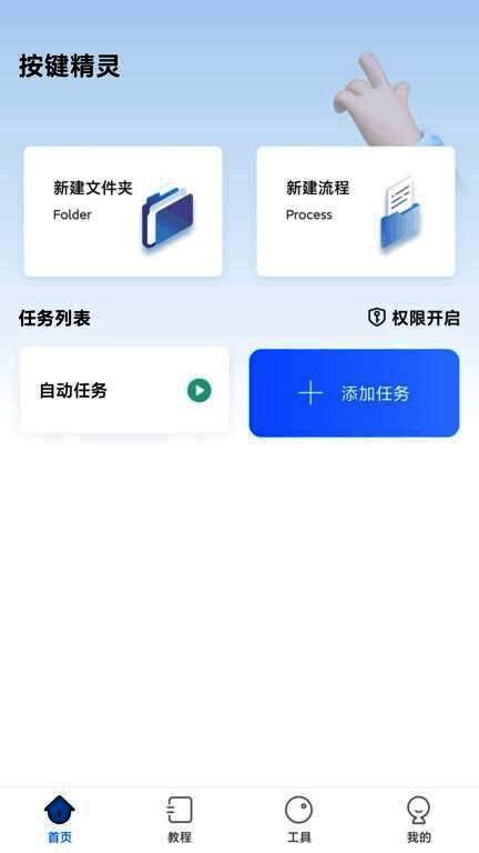 1、打开自动按键点击app,进入软件后授予软件运行所必需的权限,在首页的“任务列表”下点击“添加任务”,输入任务名称,点击确定即可进行下一步;