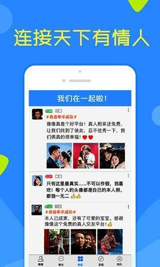 像像最新版是一款以真人化身为核心的社交软件,允许用户在虚拟空间中建立真实的人际关系。该应用程序利用面部识别技术,使用户能够更直观地识别社交网络中的真实人物并与之联系,从而增强交流和互动的真实性。一个可以免费找对象的真人相亲平台!真人交友,真人视频,真人聊天,头像都是真人照。还能天天抢喜钱!