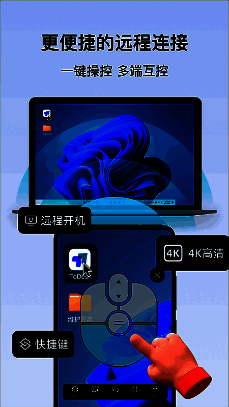 ToDesk是一款稳定流畅的远程控制电脑手机连接软件,极大的提升用户工作学习效率。大多远程控制软件使用起来还是较为麻烦,繁琐的连接步骤以及烦人的广告还是让很多人感到不适。软件没有任何广告弹窗,免费的基础版功能也十分强大,可以与其他软件收费版相媲美,轻量级客户端,不占用手机过多的内存没有像其他远程控制软件那种繁琐的连接步骤,更是去除各种多余的功能模块,打开即可轻松远程连接电脑进行各种操作。