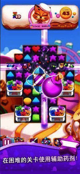 3、多样的道具加持:游戏内设有炸弹、彩虹糖等多种特殊道具,帮助玩家更轻松地完成消除任务;