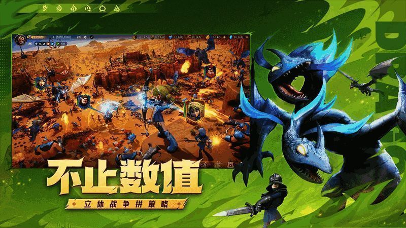 游戏最大的亮点在于其多维度的战斗体系。玩家不仅可以进行传统的“地对地”作战,还能指挥空中单位参与“地对空”与“空对空”的战斗,极大地提升了战场的复杂性和策略深度。此外,《龙石战争》引入了独特的驯龙系统,玩家可孵化并培养属于自己的巨龙,配置专属技能,并在战斗中实现空中与地面力量的协同配合。