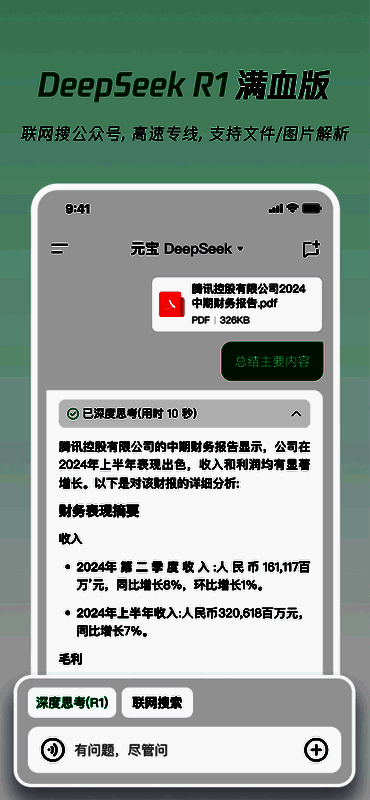 腾讯元宝将通过其强大的模型和搜索功能提供准确的答案。无论是搜答案、搜资料还是搜灵感,都能实现一问即达,让信息搜索变得更加轻松。腾讯元宝软件功能丰富,需要的用户快来下载体验吧。