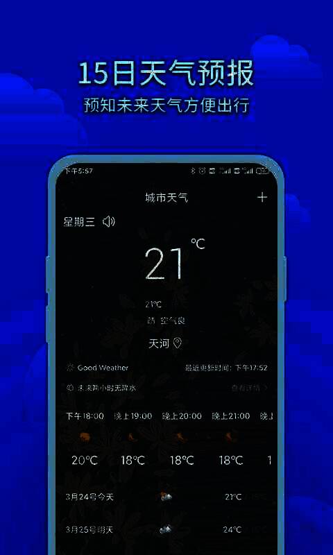 2.软件支持全球天气预报信息,无论你在哪里,都可以获得最新的天气状况。还提供了许多天气指标,如温度、湿度、风力等;