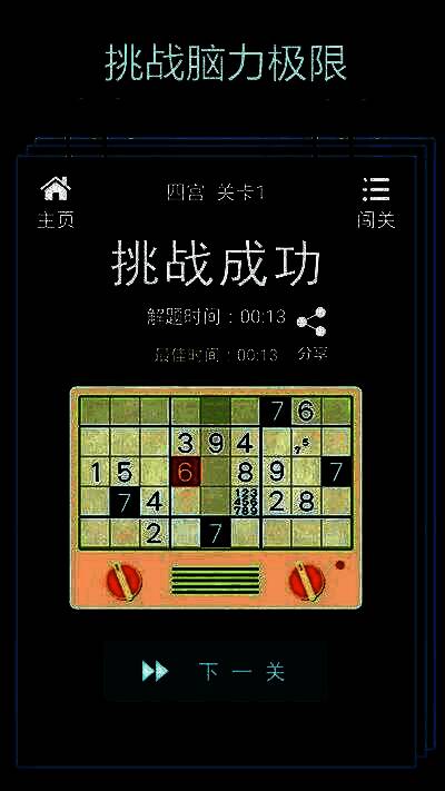 1、限时挑战:每个关卡都有规定的时间限制,玩家需要在限时内完成数独题目,越快解答完成,获得的奖励越多;