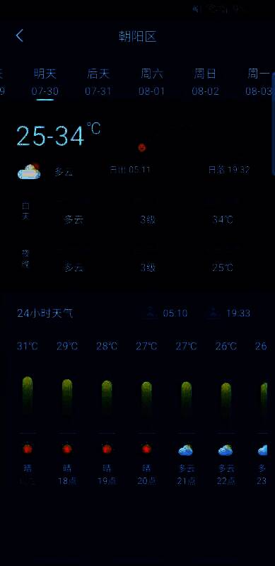 3、用户可以通过软件查看本地天气信息,也可以查看其他城市的天气信息,轻松查询各时间段的天气变化。