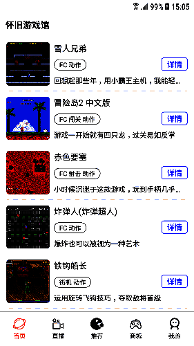 用户无需下载游戏,即可通过怀旧游戏厅软件直接体验游戏。