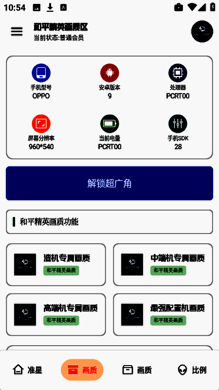 3、而在【画质】界面中我们能看到这里可进行多种处理器,分辨率等不同设备类型的画质优化功能,如图所示。中高低端都有。